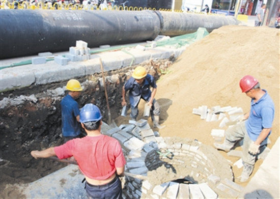 工程部副經(jīng)理鄒艷忠告訴記者,為早日還路于民,提升供水能力,西關(guān)到北京路、北京路到中山路、中山路到民權路口三個(gè)工作面都在同時(shí)施工,夜晚加班到十一二點(diǎn)更是常事。在怡和摩爾城前的施工現場(chǎng),干燥的路面在車(chē)輛通過(guò)后,揚起陣陣灰塵,挖開(kāi)的溝渠內全是泥濘,本以為借助機器進(jìn)行的管道碰接會(huì )相對容易,但誰(shuí)知道在長(cháng)長(cháng)的管道里卻藏著(zhù)一個(gè)人!肮艿琅鼋右蟮氖菄澜z合縫,光靠機器做不到這么精細,還需要人在管道里查看指引!惫こ滩堪惭b三隊隊長(cháng)涂云輝說(shuō),從爬進(jìn)管道,再到中間的調試,一路下來(lái),爬出管道時(shí)經(jīng)常是滿(mǎn)臉通紅了!暗灰用駛冇盟槙,我們的付出也算得到了回報!蓖吭戚x說(shuō)道。