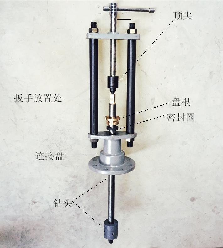 3,開(kāi)孔過(guò)程中,如突然阻力增大,頂尖可反向旋轉兩周,提起鉆桿后,再繼續搬動(dòng)扳手。