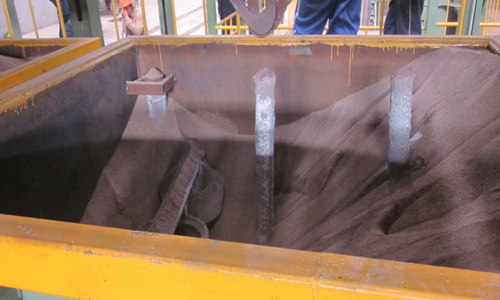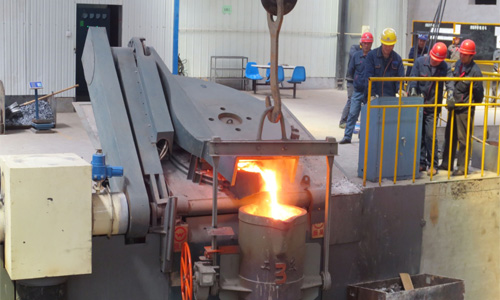 根據鐵水成分標準要求,加入適量廢鋼、硅鐵,在中頻電爐內調整鐵水成分,直至符合工藝要求。