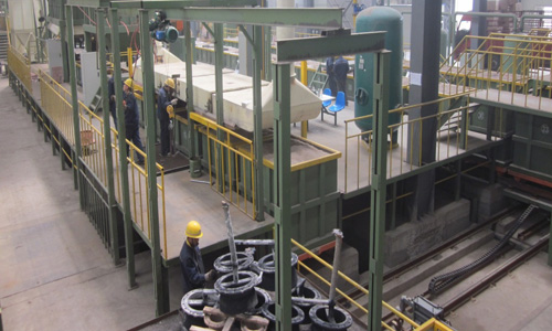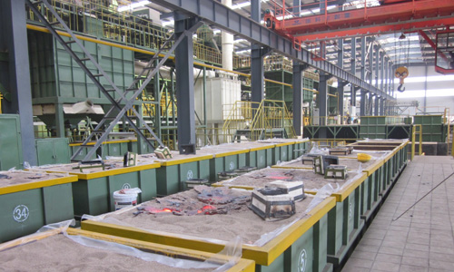 采用循環(huán)線(xiàn),減少人為縮短澆注后管件在箱內冷卻時(shí)間,從澆注完到落砂出件需3小時(shí),(工藝要求1小時(shí))確保力學(xué)性能。